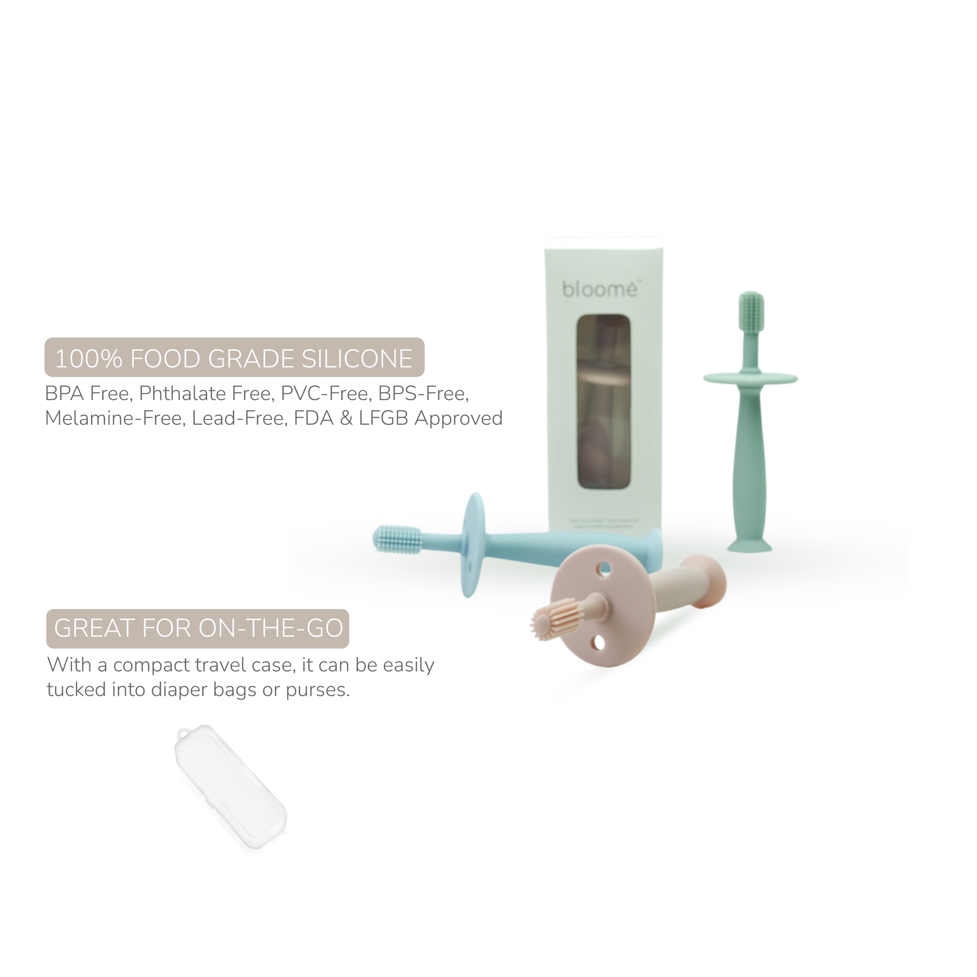 Bloome 360° silicone toothbrush is the perfect toothbrush to start a lifetime of positive association with brushing teeth for an overall good oral hygiene. It introduces your babies to the feeling of bristles before transitioning to their first real toothbrush. Each of the small, sturdy bristles removes plaque, sugar and other foods while soothing the teeth and gums.