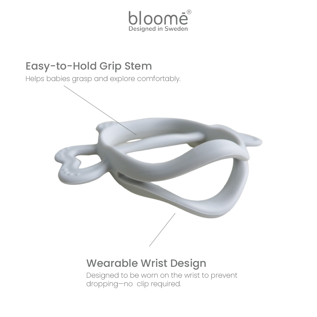 Bloome Silicone Bee Teether is the perfect teether for your babies. It is light, safe and comfortable for babies to wear on their wrists. Our soft and textured silicone material can massage the gums and relieve teething discomfort. Various shapes of chewing points will give different sensations and different angles for the little ones to explore, stimulate and develop budding, and bring comfort to babies.