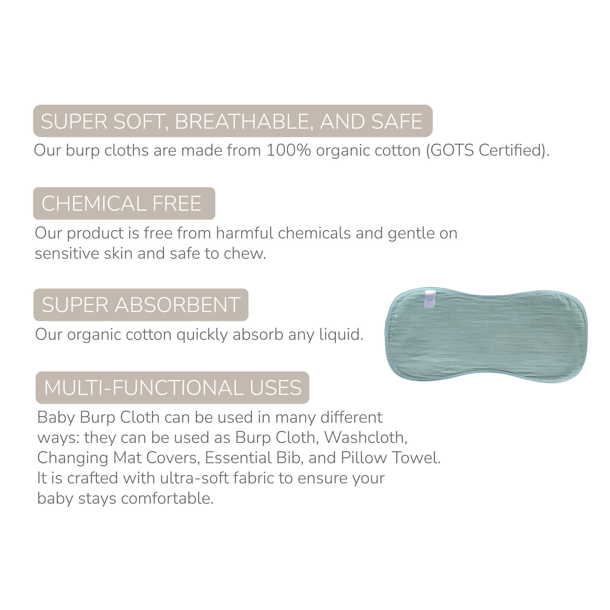-SUPER SOFT, BREATHABLE & SAFE: Our baby burp cloth is made from 100% organic cotton (GOTS certified).