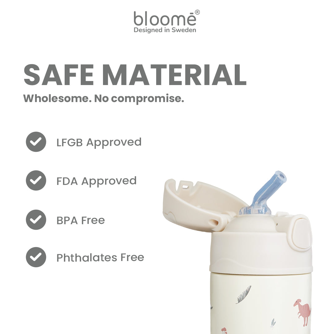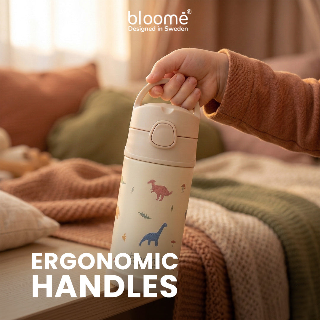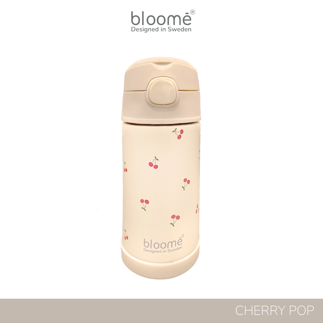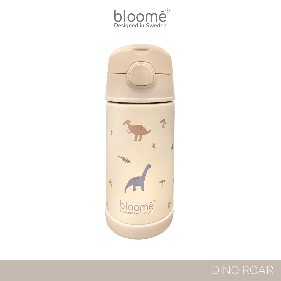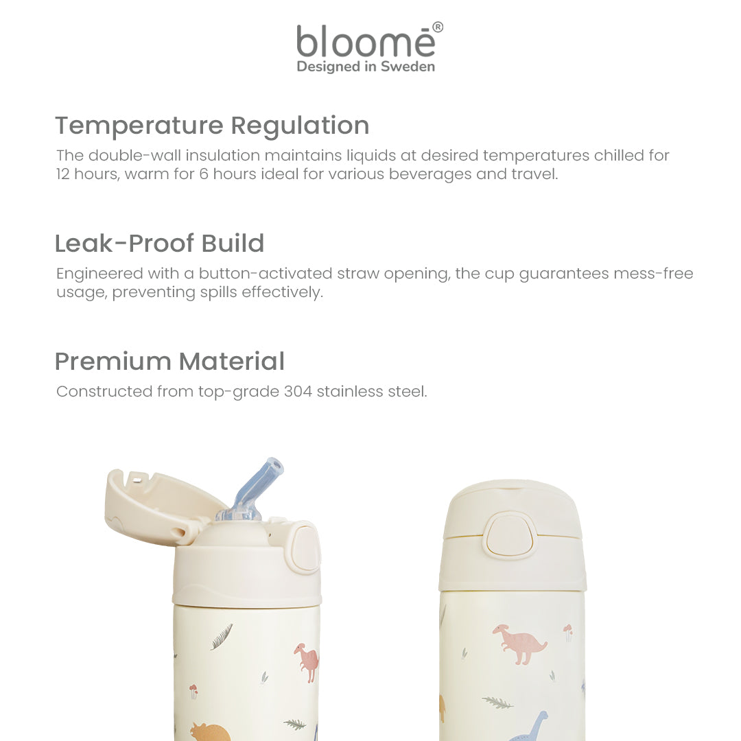 BLOOME - Stainless Steel Straw Cup SUS304 | Spill-Proof, Lightweight, and Safe-Lid Children's Drinking Bottle (Cherry Pop / Dino Roar)