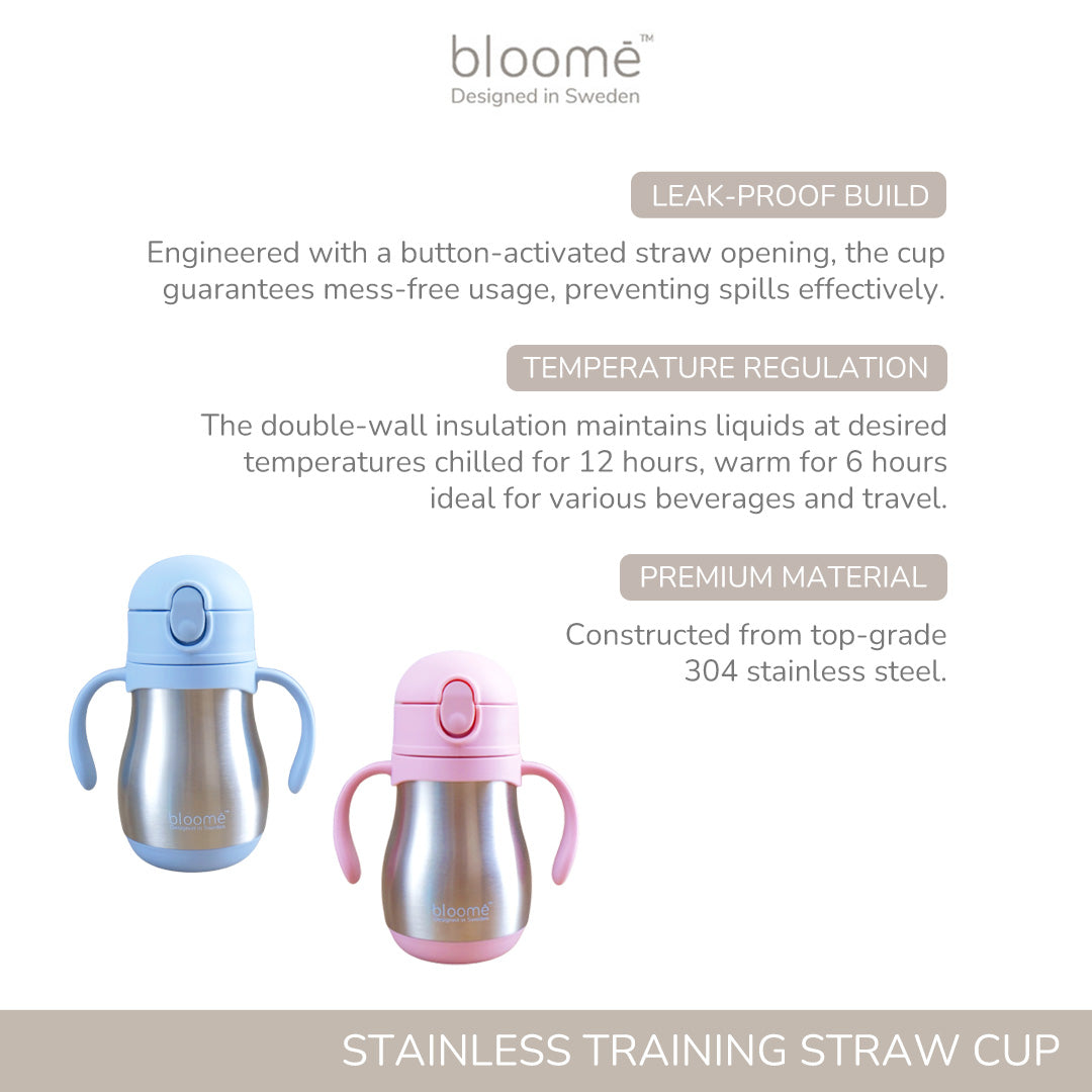 Introduce your baby to independent drinking with ease using the Bloome Stainless Training Straw Cup. Tailored for babies aged 6 months and above, this cup ensures a seamless experience for both babies and parents.